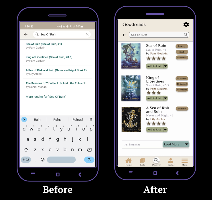 Followed the Design Thinking Process to research the Goodreads community and reimagine the book-page layout to favor simplicity and ease of use.