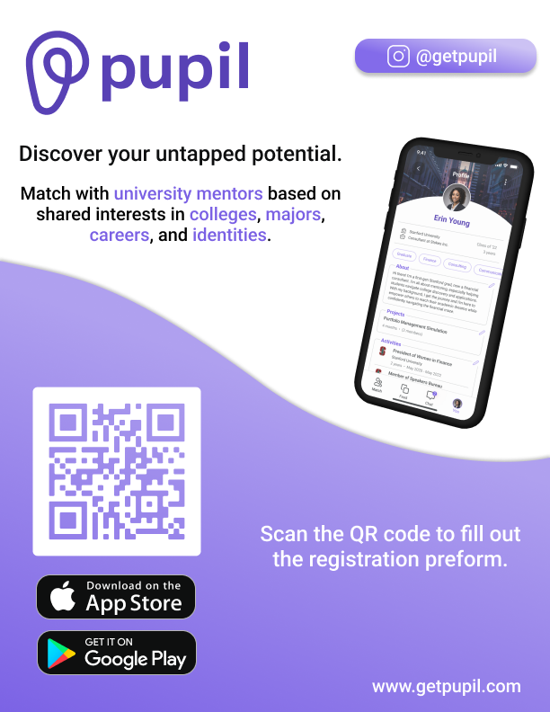 Pupil is an ed-tech startup working to connect underrepresented high school students with mentors from college and beyond to assist them in the college application and future-planning portions of their educational and professional journeys.