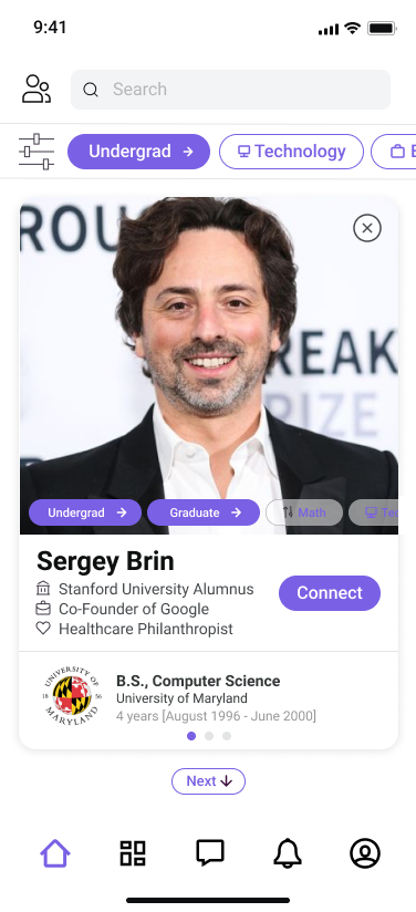 With additional time, I would further refine interaction details and conduct expanded user testing to validate key flows across desktop use cases. As new features continue to be developed for the platform, adapting them thoughtfully to the web experience would be a natural next step. I was particularly interested in exploring desktop-friendly alternatives to the swipe-to-connect interaction in the Mentor/Mentee Matching flow, as similar patterns in dating apps often face challenges when translated to non-touch interfaces.